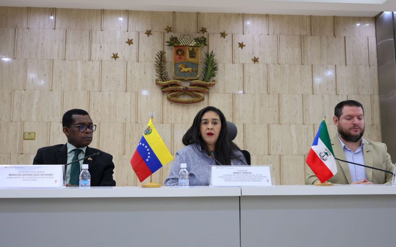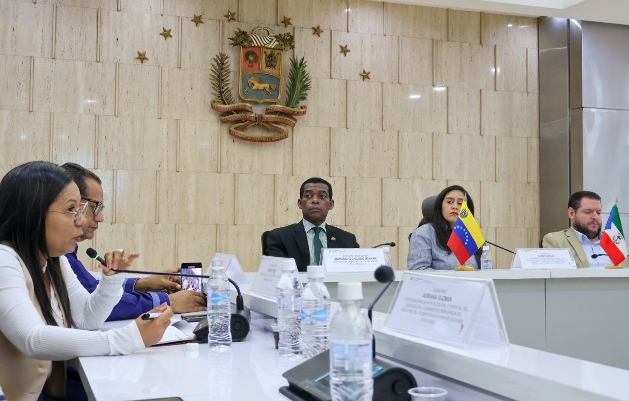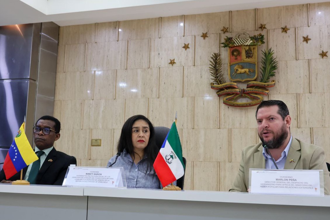 El encuentro tuvo lugar en el Salón Simón Bolívar del Ministerio del Poder Popular para Relaciones Exteriores, con la presencia de los viceministros del Ministerio del Poder Popular para la Mujer y la Igualdad de Género, Nancy García y Luis Laya; en representación de la Dirección General del Despacho del Viceministro para África de la Cancillería, Marlon Peña; el embajador de Guinea Ecuatorial acreditado en Venezuela, Marcos Ndong Edu Nchama y representantes de la Escuela Feminista del Sur “Argelia Laya” (Femsur) y del Instituto Nacional de la Mujer (Inamujer).